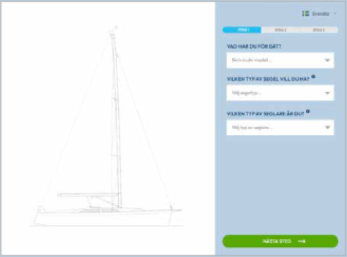 Hur kan vi hjälpa dig? Priskollen Här hittar du riktpriser på segel till över 1 500 olika båtmodeller. Om du inte hittar det du söker, skicka gärna en prisförfrågan till oss för just din båt (här bredvid). Sök båtmodell Sök efter: Prisförfrågan Här kan du fråga oss om just din båt. Fråga oss om segel, kapell, rullsystem och tillbehör. För-, Efternamn Telefon E-post Båtmodell Hemmahamn Bostadsort Tillverkningsår Intresserad av följande segel/kapell/rullsystem tillbehör:FileMax filstorlek: 50 MB. Konfigurator Konfigurera din rullgenua efter dina specifika önskemål. Skapa ditt segel