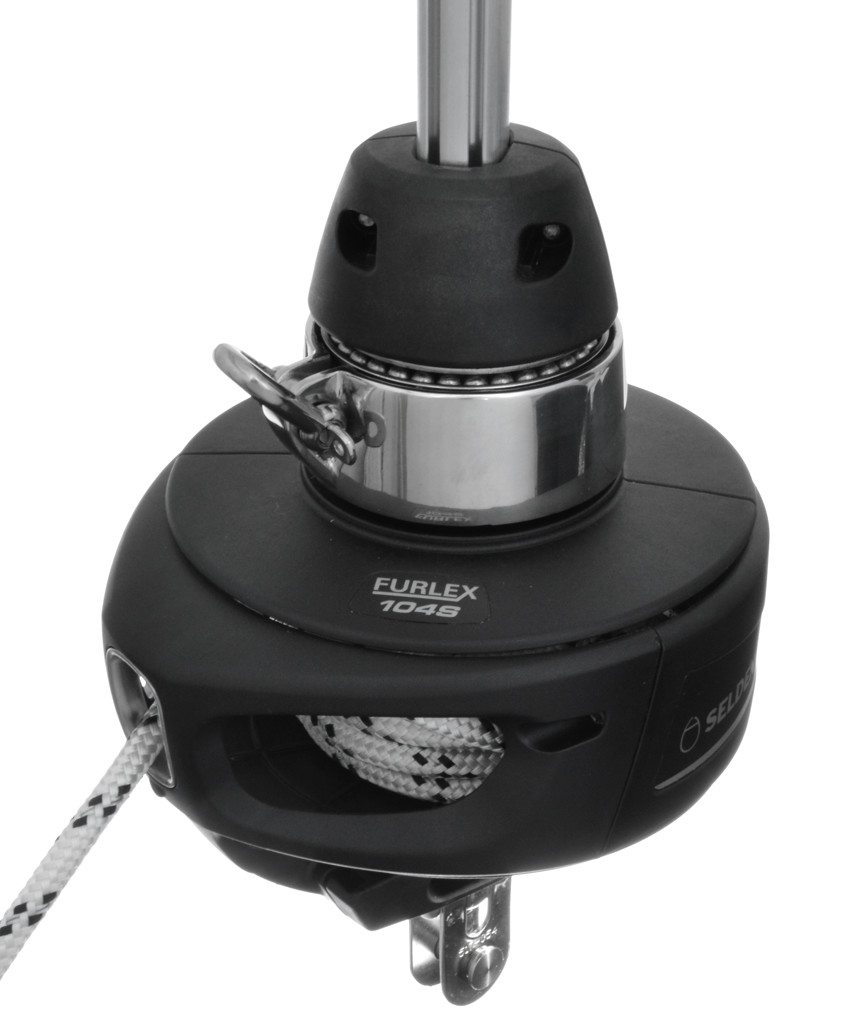 Seldén lanserade Furlex 104S för bara ett par år sedan. Systemet erbjuder 2 bra nyheter. Som tillval erbjuds inbyggd vantskruv. Innebär att förstag kan göras 35mm längre eller kortare efter montering, utan att halshornets höjd över däck ändras. En fin möjlighet att trimma mastlut och samtidigt en skön marginal att ha i samband med montering. Den andra nyheten är att nya Furlex 104S tillåter lite längre förlik (lite större segelyta) då trumman bygger lägre (närmare däck).